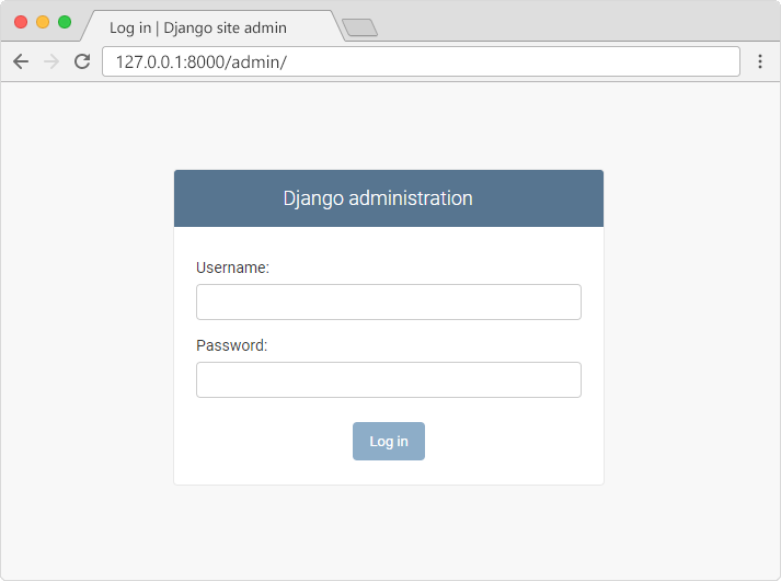 在瀏覽器視窗中,在位址列中輸入 127.0.0.1:8000/admin/