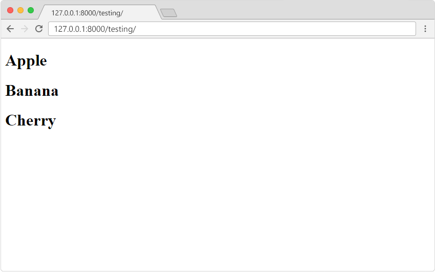 在瀏覽器視窗中,在位址列中輸入 127.0.0.1:8000/testing/