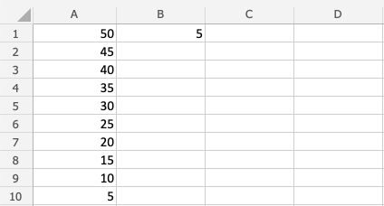 讓我們保留上一個練習中的數字。如果您完成了上一個練習,請刪除 B1