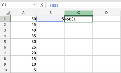 太棒了!您已成功使用絕對引用將 B1(5)