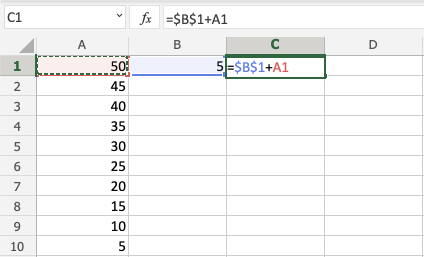 您還可以鎖定一個單元格並將其新增到其他單元格中。