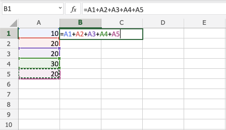 您可以透過在單元格之間輸入 (+) 來向公式中新增更多單元格。