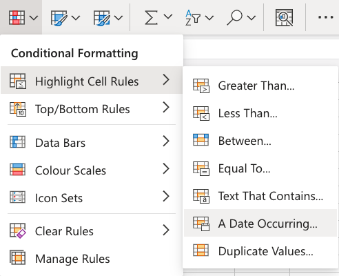- 從下拉選單中選擇“突出顯示單元格規則”
