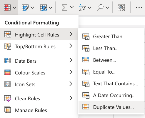 注意:您可以使用“管理規則”來刪除突出顯示單元格規則。