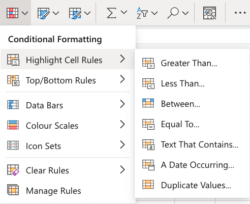 - 從下拉選單中選擇“突出顯示單元格規則”