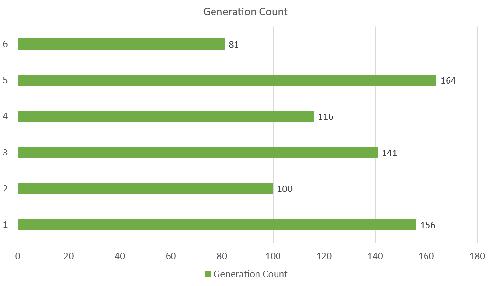上面的圖表代表了每個世代的寶可夢數量。