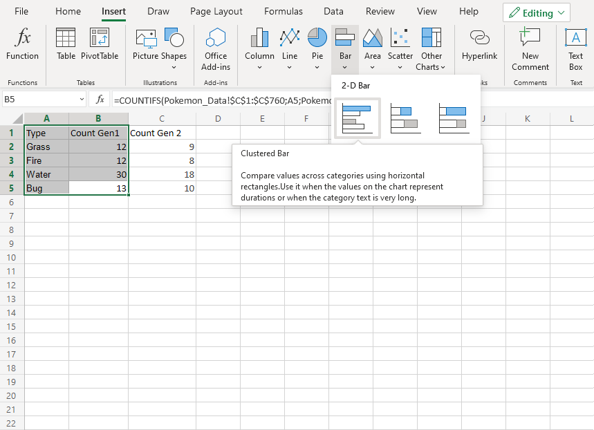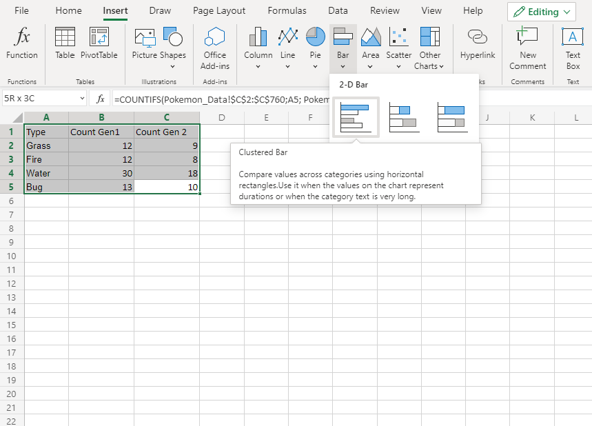 ),然後從下拉選單中選擇 **簇狀條形圖**(