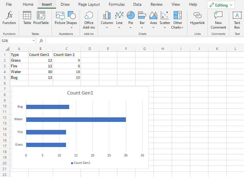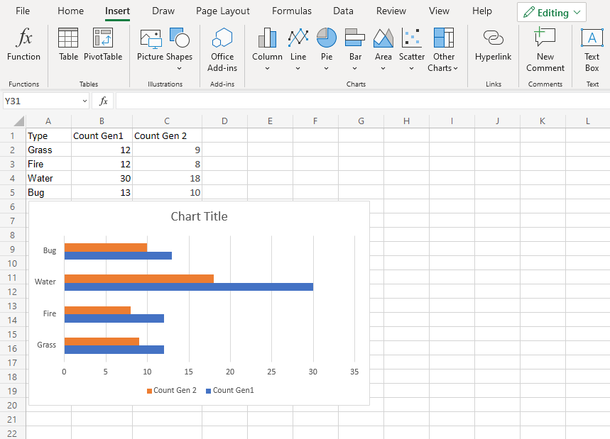 - 點選 **插入** 選單,然後點選條形選單(