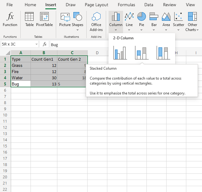 ),然後從下拉選單中選擇**簇狀柱形圖**(