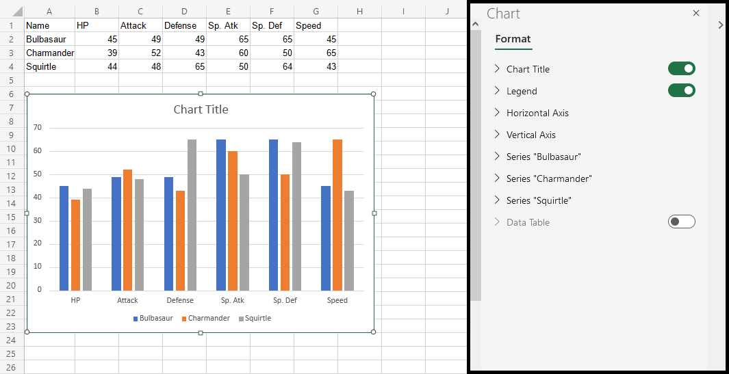 注意:您可以單擊圖表標題,然後按鍵盤上的 Delete