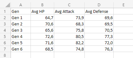 該圖表顯示,第二代所有統計資料的平均值非常接近,第五代寶可夢的平均攻擊力最高。