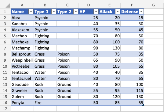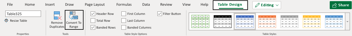 )表格現在已轉換為範圍,並且不再具有可用的表格選項。