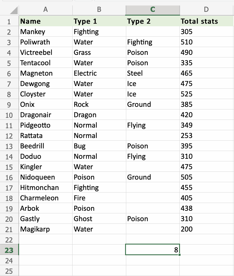 COUNTBLANK 函式成功計算出範圍 C2:C21