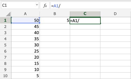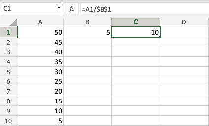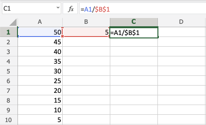 您可以鎖定一個單元格,然後用其他單元格對其進行除法運算。