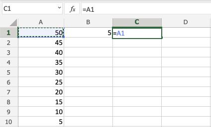 讓我們看一個例子,我們使用絕對引用和填充功能,用範圍 A1:A10
