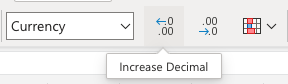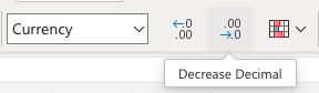 - 點選減少小數位數按鈕兩次