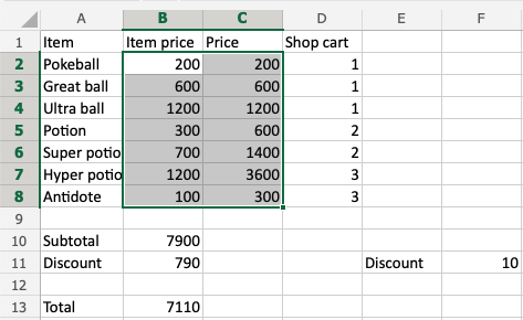 在示例中,我們有代表價格的單元格,可以將其格式化為貨幣。