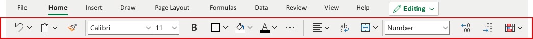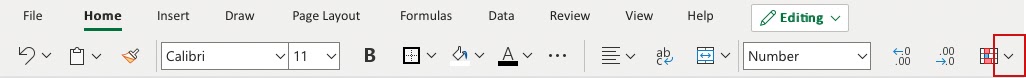 透過單擊右側的箭頭/向下插入符號可以展開功能區。這可以訪問更多命令