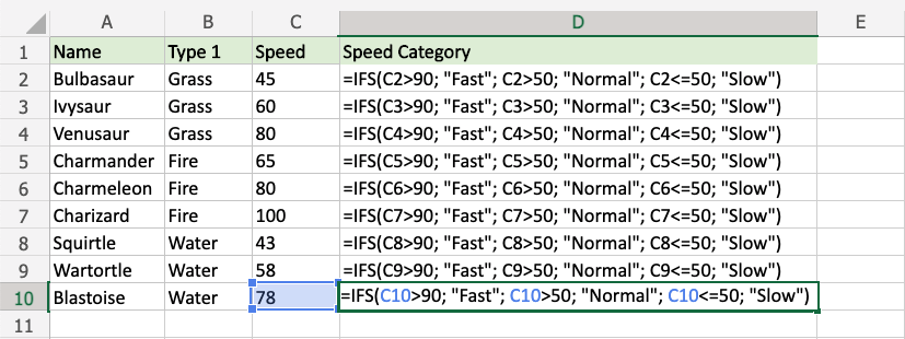 該函式可以使用填充函式對每一行重複執行,以對每個寶可夢進行相同的檢查。