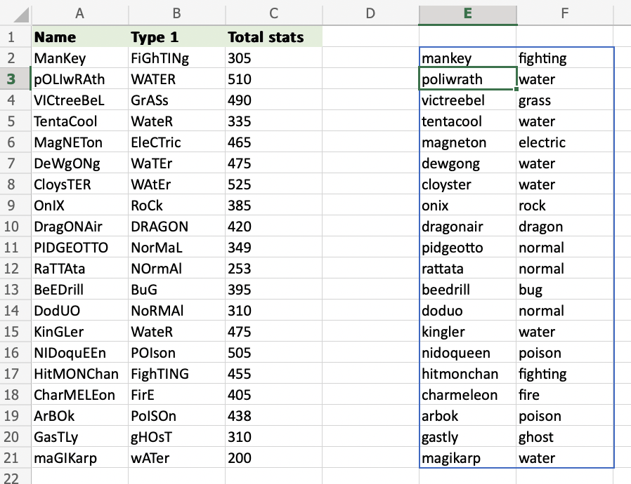 當單元格輸入存在大量大小寫不一致時,或者準備對資料集進行區分大小寫的用法時,更改單元格值的字母大小寫會非常有用。