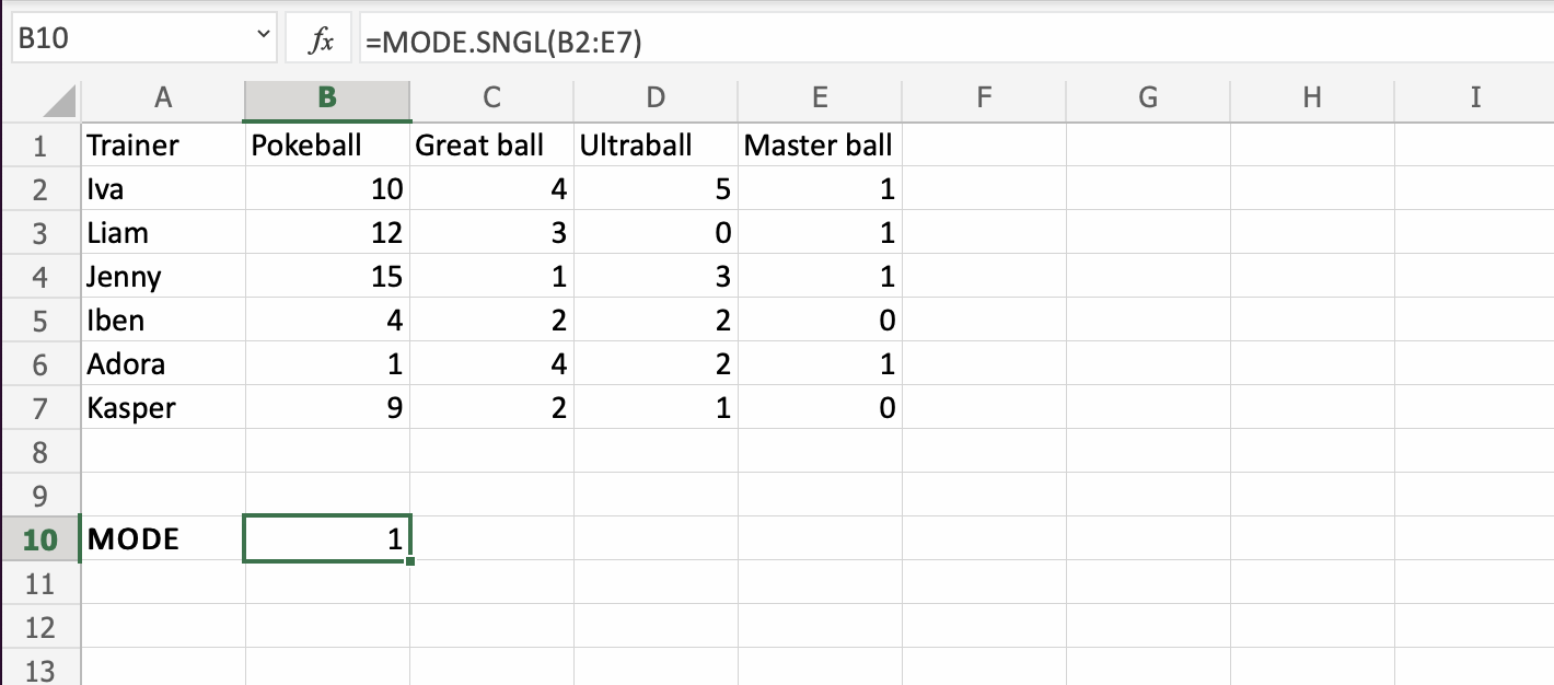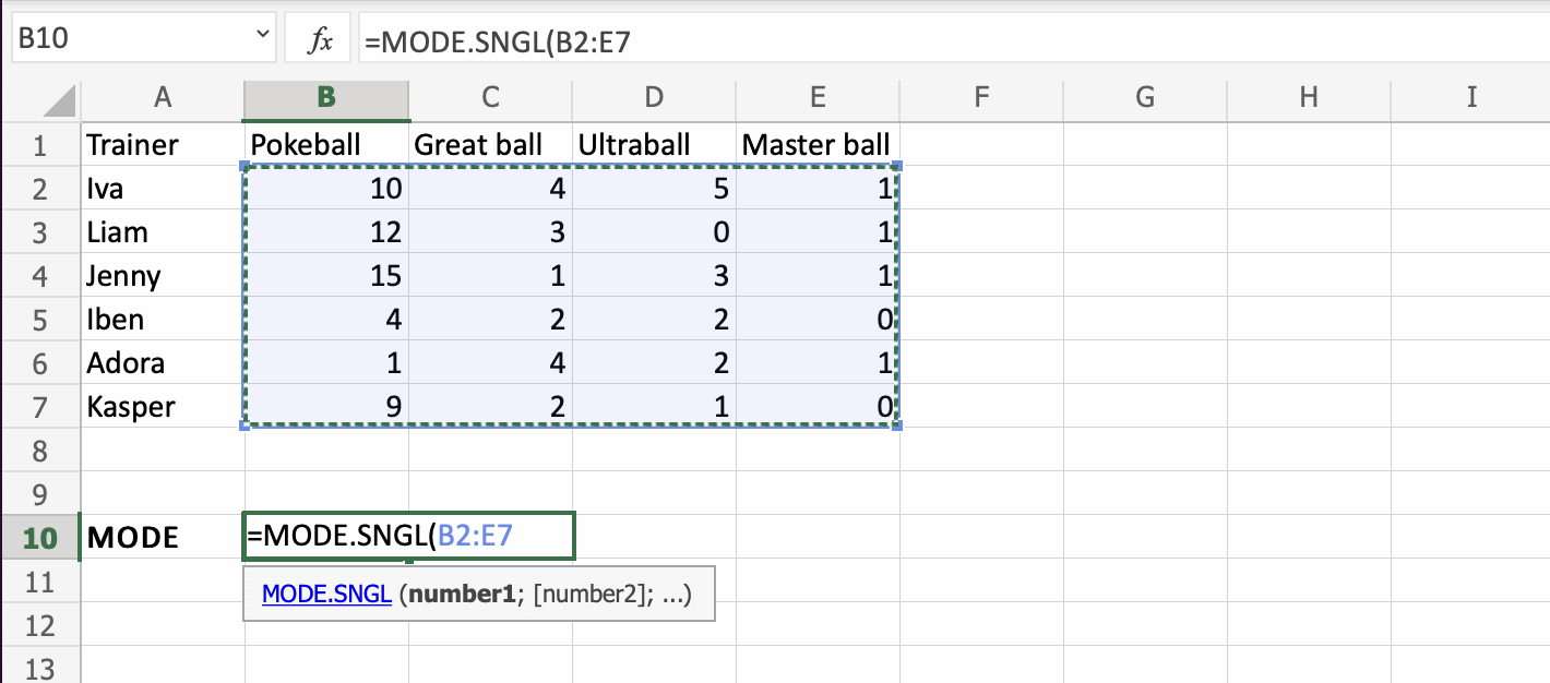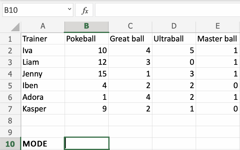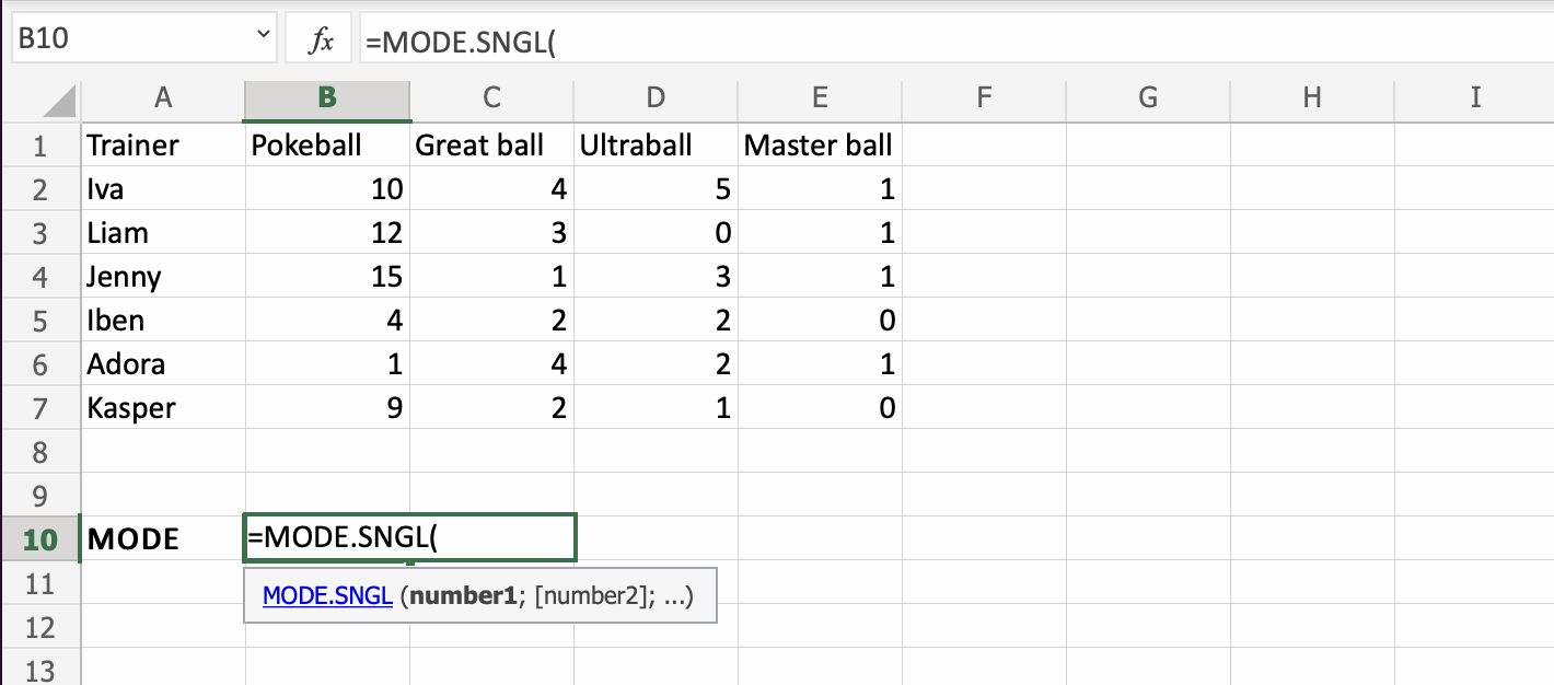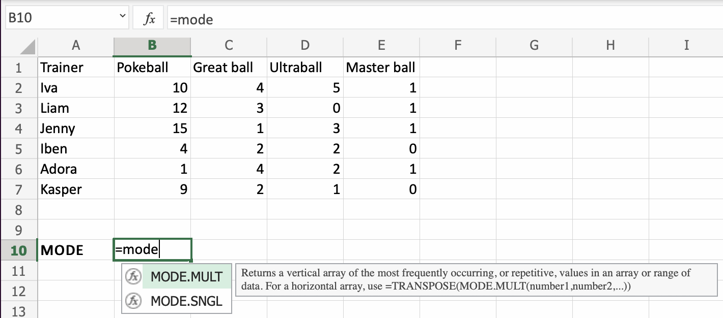 讓我們看一個例子,我們幫助寶可夢訓練師計算寶可夢球數量的眾數。