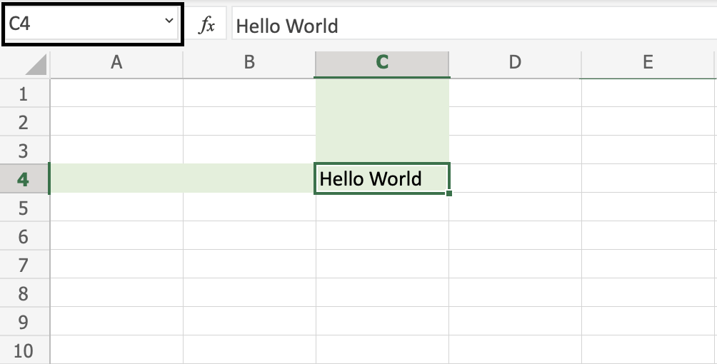 請看下面的圖片。Hello world 輸入在單元格 C4