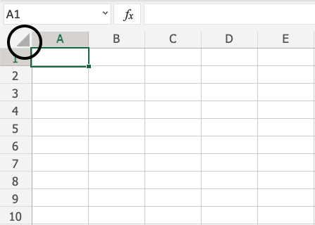 可以透過單擊電子表格左上角的三角形來選擇整個電子表格: