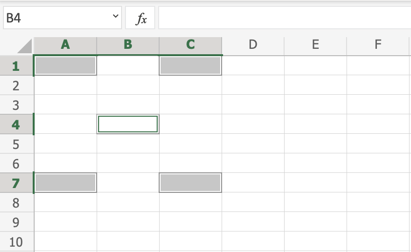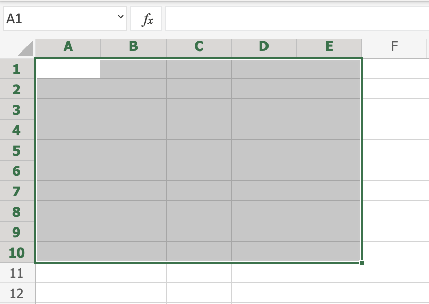 單元格區域的選擇有很多用途,它是 Excel 最重要的概念之一。不要過多考慮它如何與值一起使用。您將在後面的章節中學習這一點。現在讓我們關注如何選擇區域。