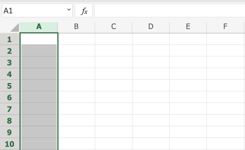 透過左鍵單擊列來選擇列。這將選擇工作表中與該列相關的所有單元格。
