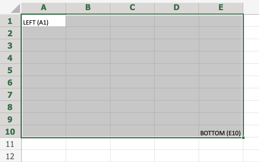 注意:您將在本示例之後瞭解為什麼該區域稱為 A1:E10