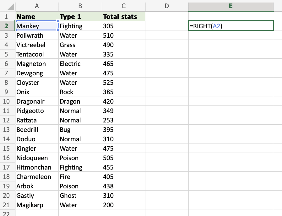 =RIGHT(A2)