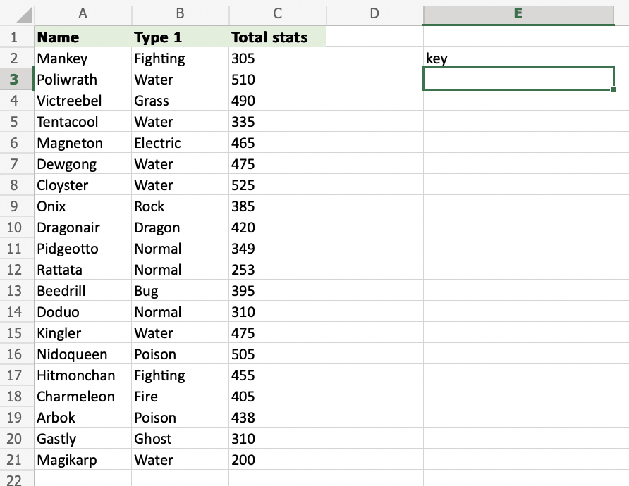 - 選擇一個單元格