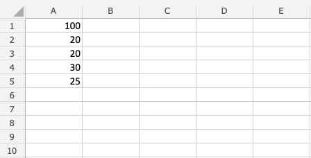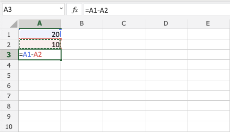 讓我們使用多個單元格進行減法。首先,輸入以下值
