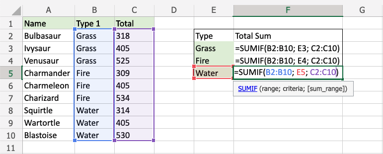 SUMIF 函式是 Excel 中的一個預設函式,用於根據 **true** 或 **false** 的 **條件** 來計算某個範圍內值的總和。