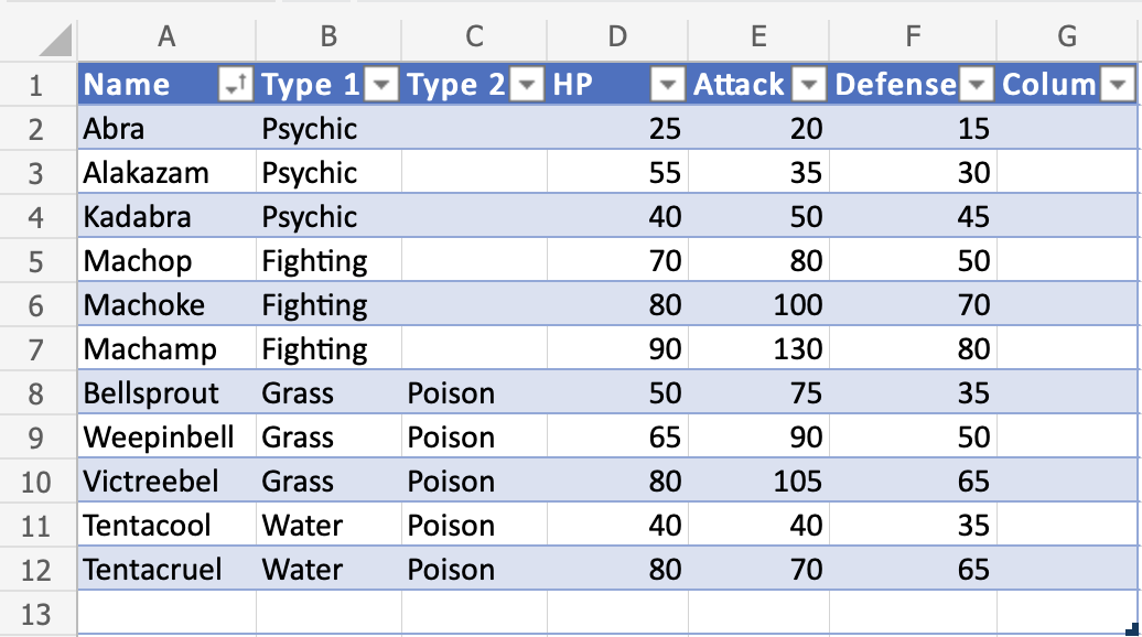 讓我們嘗試按名稱對寶可夢進行排序,看看會發生什麼。