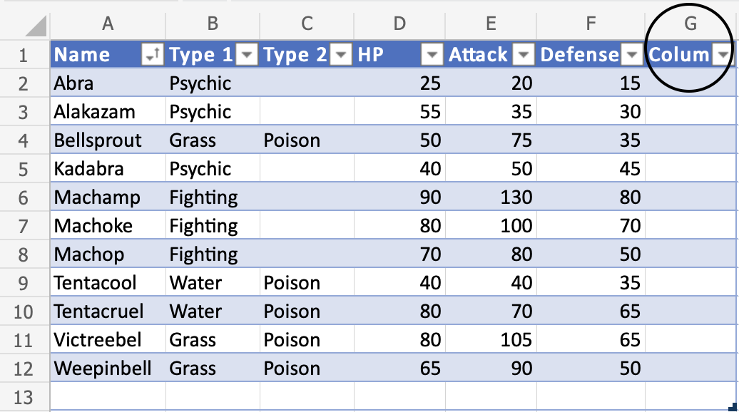 注意: 它不會覆蓋現有標題的名稱。它將使用在標題單元格中輸入的值。