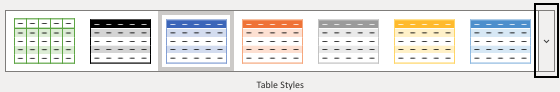 點選“表格樣式”選項按鈕會開啟一個包含不同樣式選項的選單。