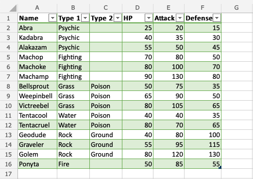 做得好!表格的格式已更改為淺綠色樣式。