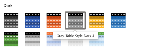 應用灰色,表格樣式深色 4。在深色類別中找到。