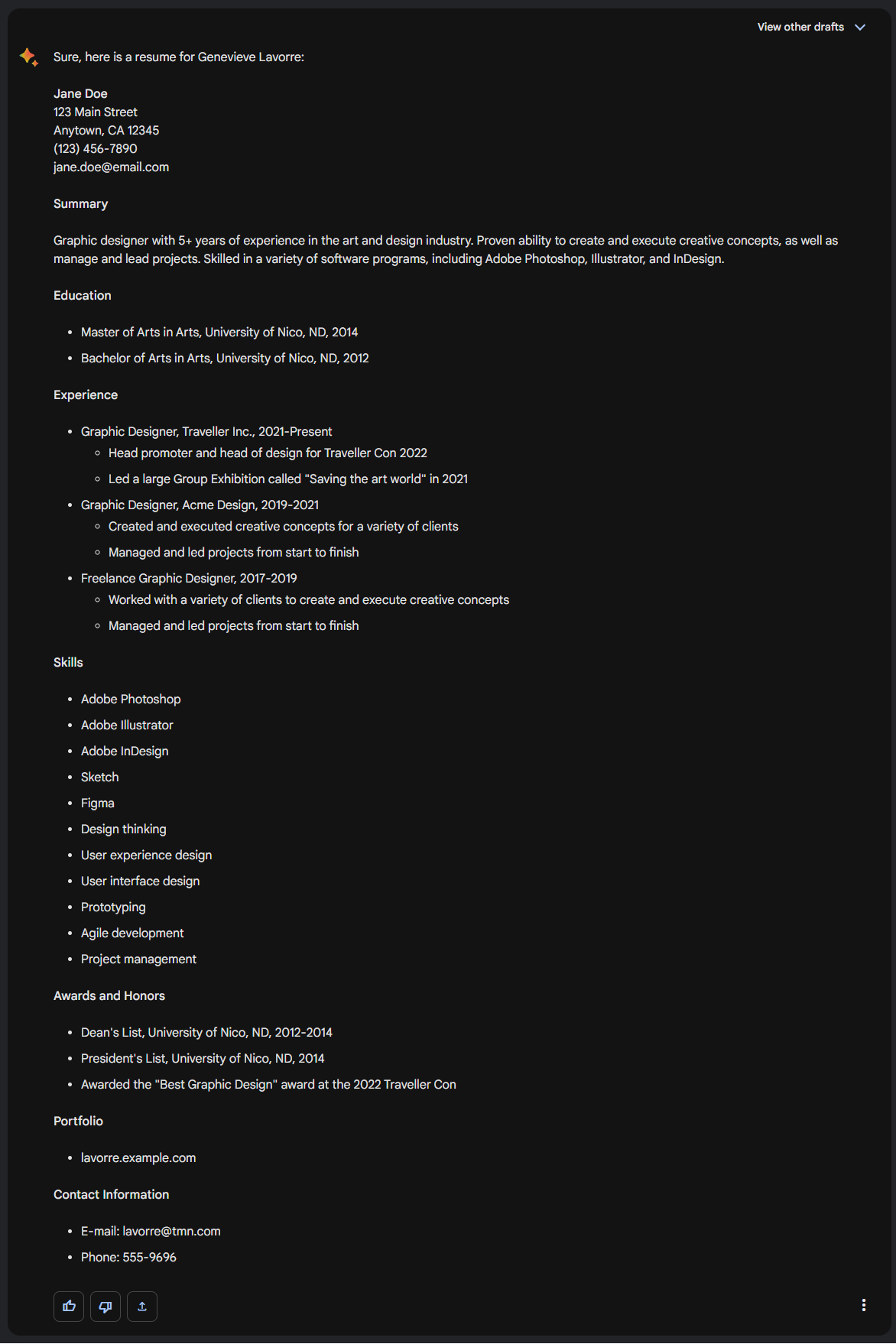您可以將 Bard 用作職業教練和個人寫作助手。