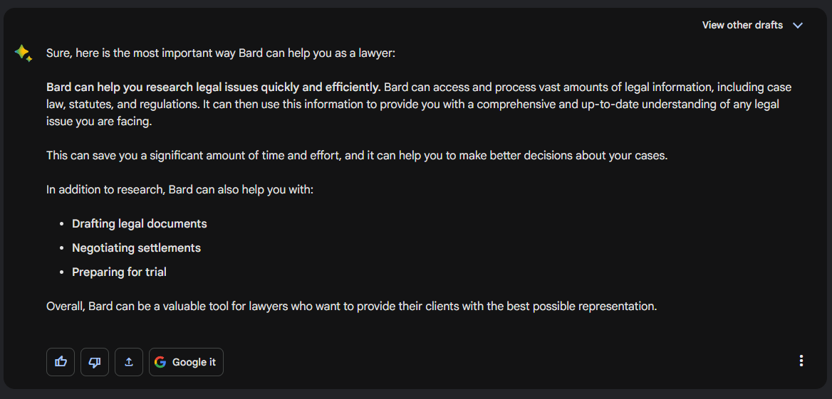 生成式 AI (在本例中為 Bard) 的響應可能是