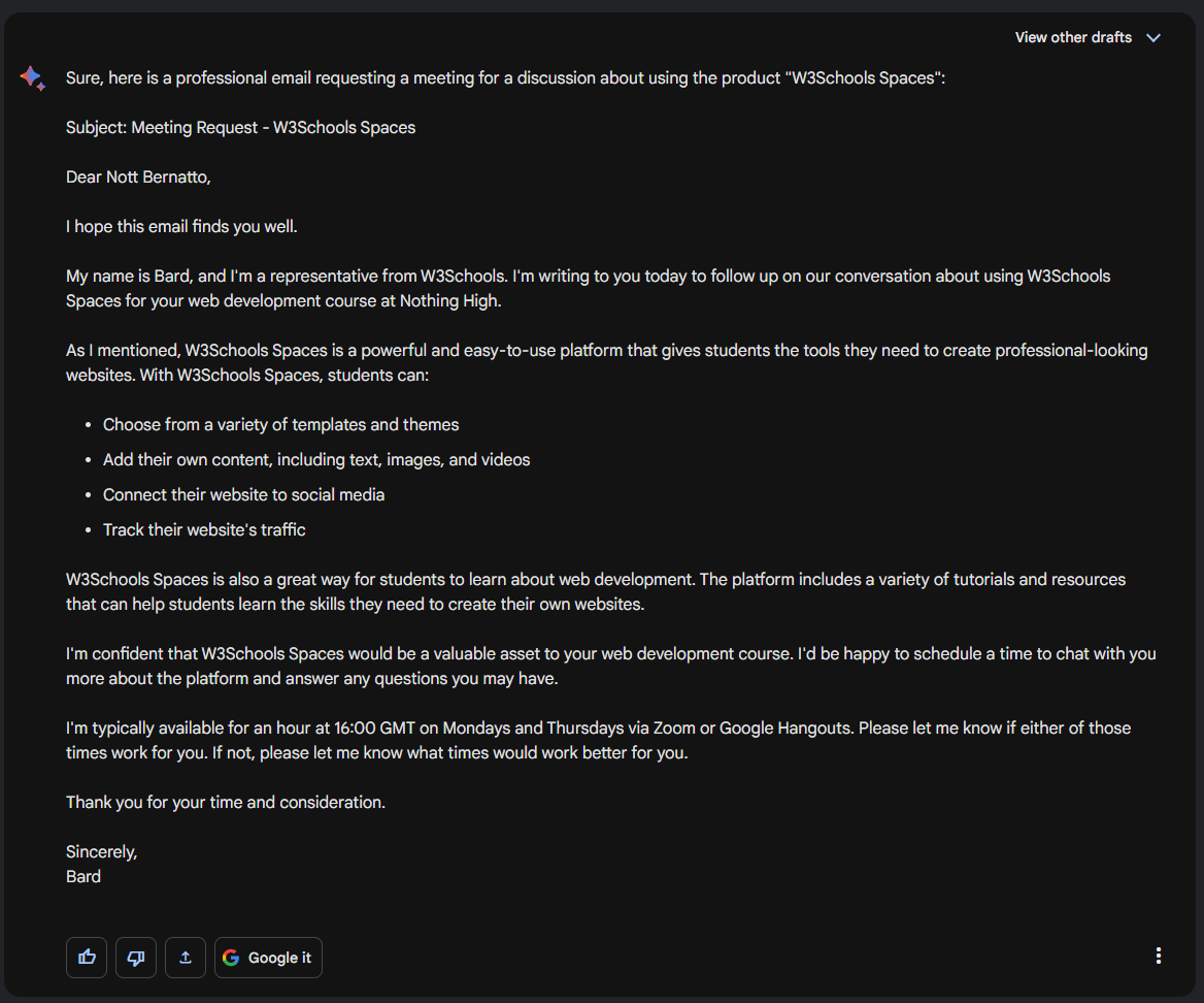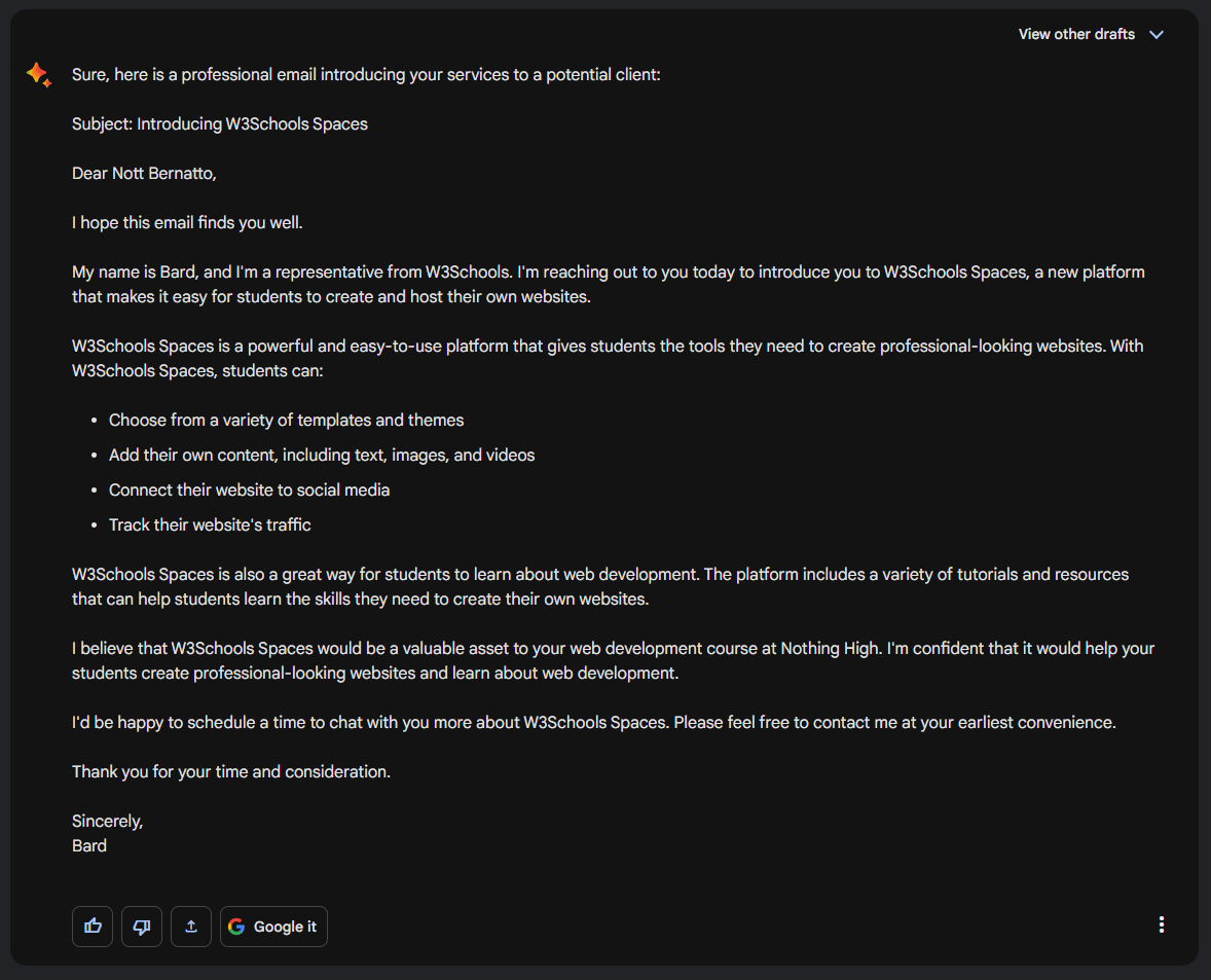 現在,您可以繼續完善此草稿並使其成為您自己的。但 Bard 為我們提供了一個很好的起點。