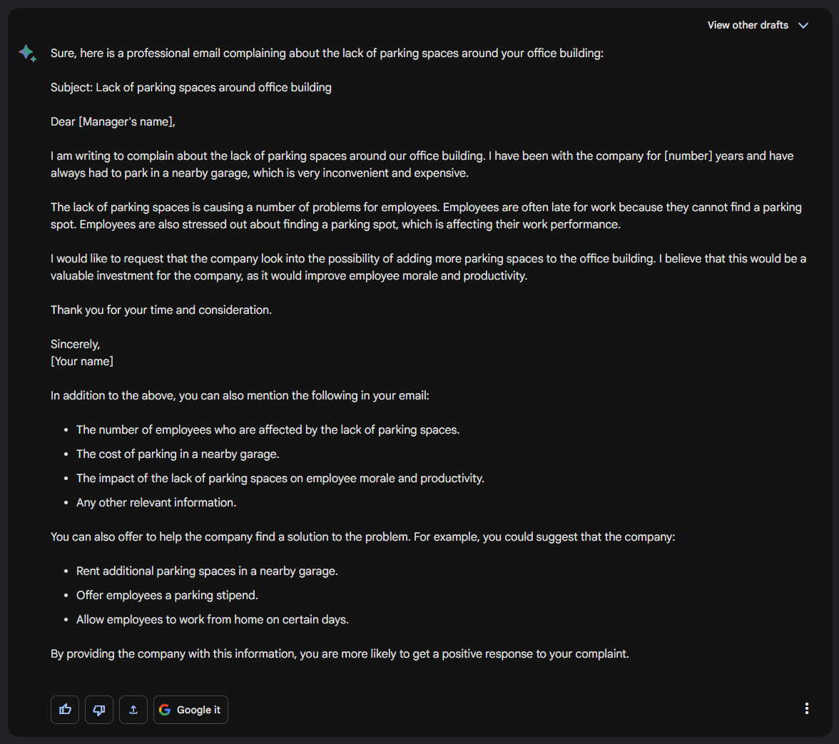 我們將逐一透過示例進行講解,學完本頁後,您應該就能很好地瞭解如何使用 Bard 撰寫任何所需的電子郵件。
