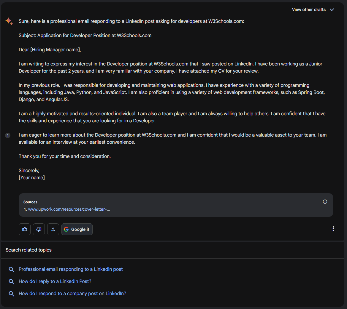 我們在 LinkedIn 上看到了一個招聘開發人員的帖子。我曾擔任初級程式設計師兩年,並且非常熟悉 W3Schools.com。