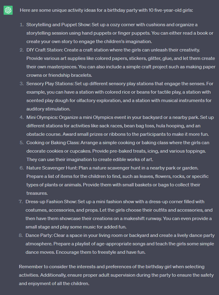 與要求 ChatGPT 提供具體資訊不同,頭腦風暴會議重要的是要保持開放性。這將為您提供更廣泛的回應。