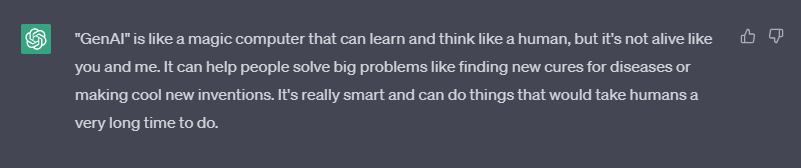 生成式 AI(在這種情況下是 ChatGPT)的響應可能如下所示: