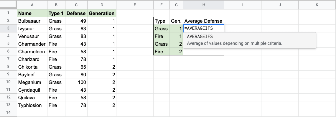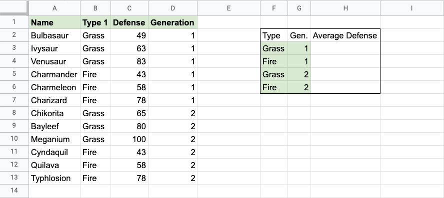 現在函式將計算第一代草系寶可夢:妙蛙種子、妙蛙草和妙蛙花的平均防禦值。