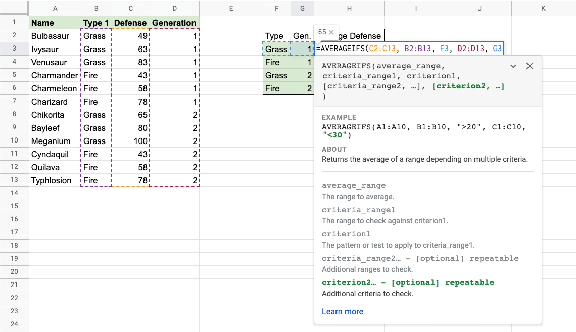 AVERAGEIFS 函式是 Google Sheets 中的一個預設函式,它根據一個或多個 **true** 或 **false** 的 **條件** 來計算範圍的 平均值。