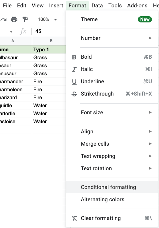 您可以透過選擇“格式”選單中的“條件格式”選項來訪問該選單。