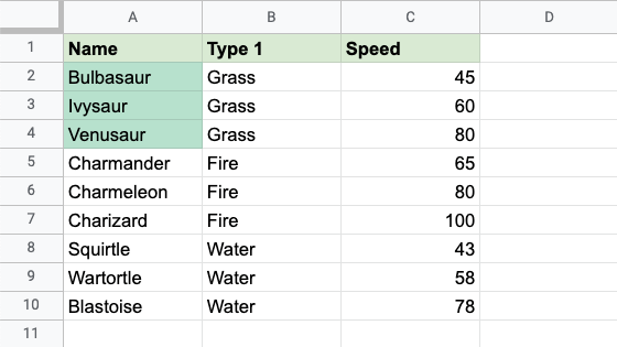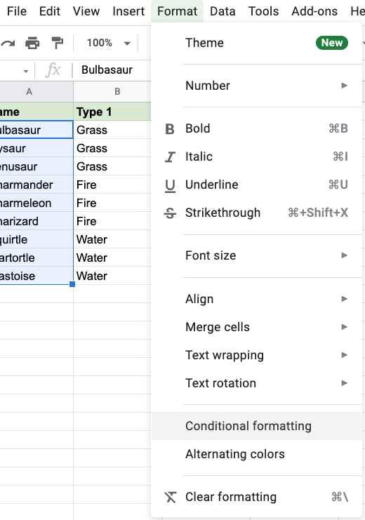 現在,如果名稱以“saur”結尾,則“名稱”值單元格將具有彩色背景高亮。
